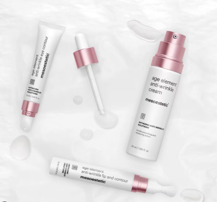 Age Element е продуктова серия, която се бори срещу признаците на стареенето на кожата. След много години изследвания Mesoestetic разработи решение, базирано на епигенетиката. Марката притежава патент за разработването на система, която действа на основните маркери на стареенето. Проучванията показват, че продуктите от гамата, след продължителна употреба, помагат за повишаването на експресията на маркера за клетъчно дълголетие – SIRT1, което е безспорно доказателство за мощното действие на продуктовата серия Age Element.