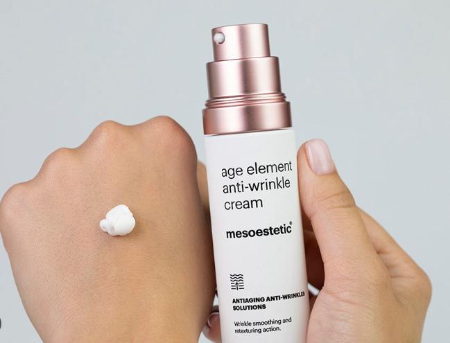 Кремът age element® anti-wrinkle на mesoestetic е интензивна подмладяваща грижа, създадена за видимо намаляване на бръчките и подобряване на еластичността на кожата. Формулата му съдържа пептиди и активни съставки, които стимулират производството на колаген и поддържат кожната структура, като същевременно изглаждат лицевите линии и предотвратяват появата на нови. Текстурата е кадифено мека и лесно се абсорбира, оставяйки кожата подхранена, гладка и с видимо по-отпочинал вид. При редовна употреба тенът става по-сияен, релефът на кожата се изравнява, а признаците на стареене са значително намалени. Подходящ за ежедневна употреба при всички типове кожа, включително чувствителна.