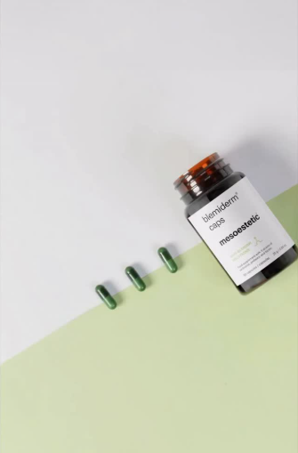Blemiderm® Caps е хранителна добавка, специално разработена за кожа, склонна към пъпки и несъвършенства. Формулата работи отвътре навън, възстановявайки естествения баланс на кожата и подпомагайки контролa над образуването на нови несъвършенства.  Добавката съдържа пробиотици и пребиотици, които подпомагат здравословната чревна микробиота — този подход влияе положително върху взаимодействието между чревната и кожната среда (axis gut-skin). В състава влизат и биотин и цинк — микроелементи, които спомагат за нормалното състояние на кожата и подпомагат защитните ѝ функции.