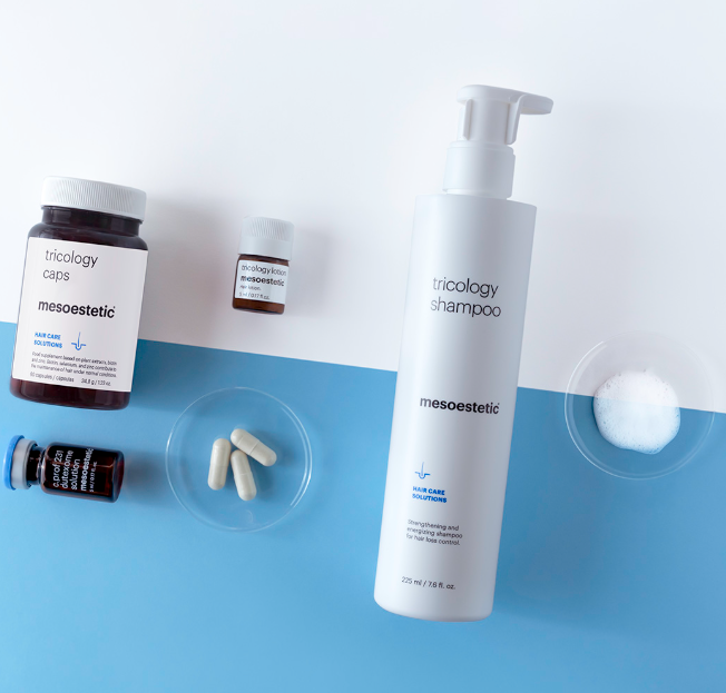 Медицинският протокол включва мезотерапевтичен разтвор от серията meso.prof или tricology с активни съставки като пептиди, витамини, биотин, растителни екзозоми – тези формули имат за цел да активират микроциркулаци, да засилят фоликула и да намалят косопада.